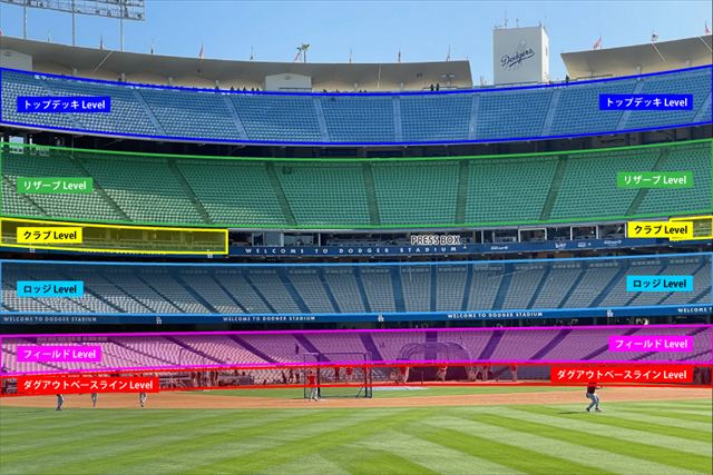ドジャースタジアムで観戦する座席はどこが良いか?一生に一度の観戦なので、選手をできるだけ近くに見たい、ホームランボールを取りたい、最高級の座席で観戦したいなど、いろいろなご希望があると思います。ここでは、ドジャースタジアムの座席についてご紹介をいたします。