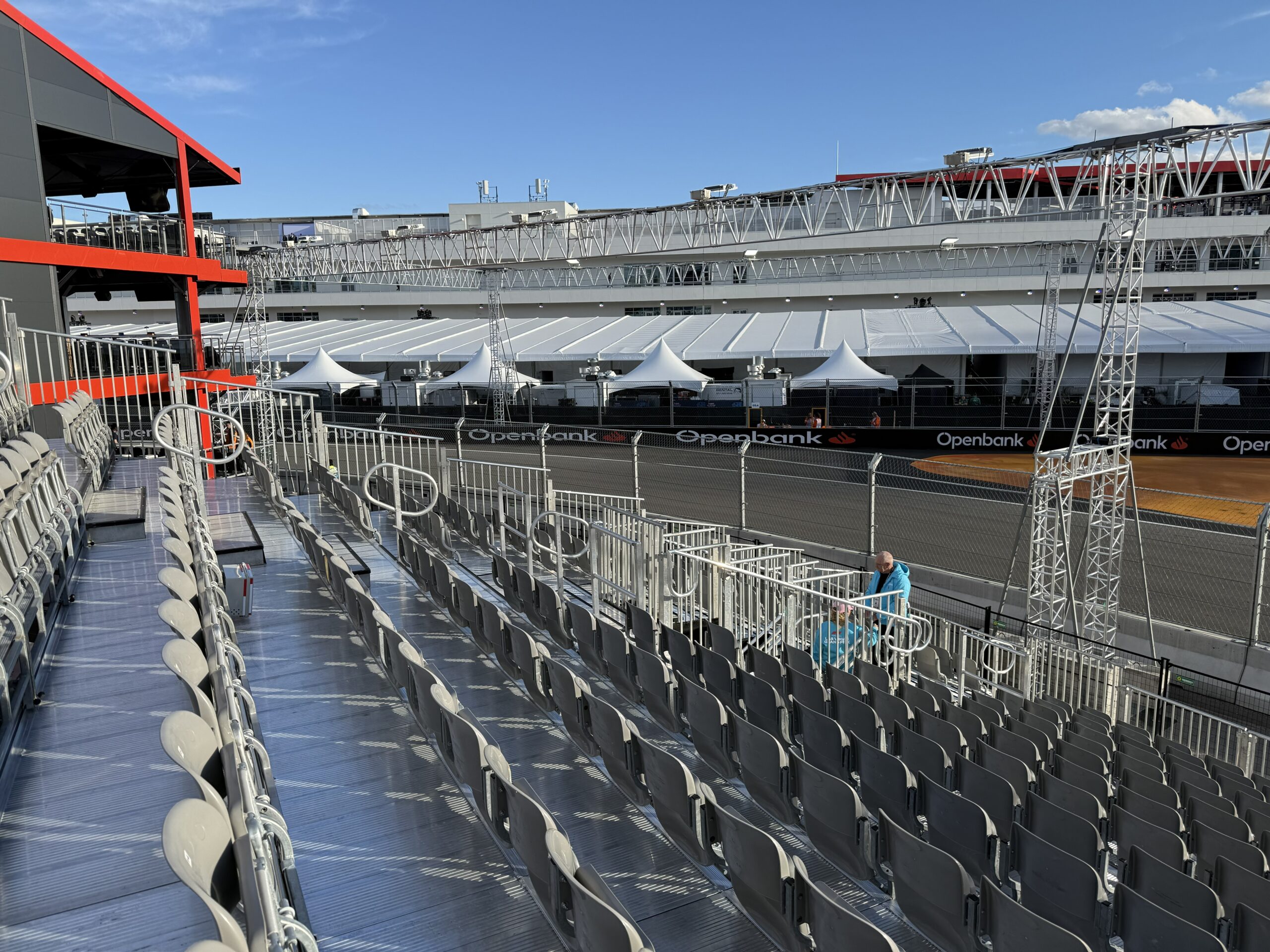 ラスベガス大通りのロングストレート~ターン16から、メインスタンド前の最終コーナー、ターン17まで延びている「Harmonストレート」後方にこの「West Harmon Grandstand」があります。