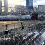ベラージオホテル前は観客席が設置されるため、歩道を通り抜けることはできません。ベラージオ側には、Bellagio Fountain Club以外にF1観戦ゾーンは有りませんので、逆サイドのパリスホテル側を歩いた方が良いでしょう。