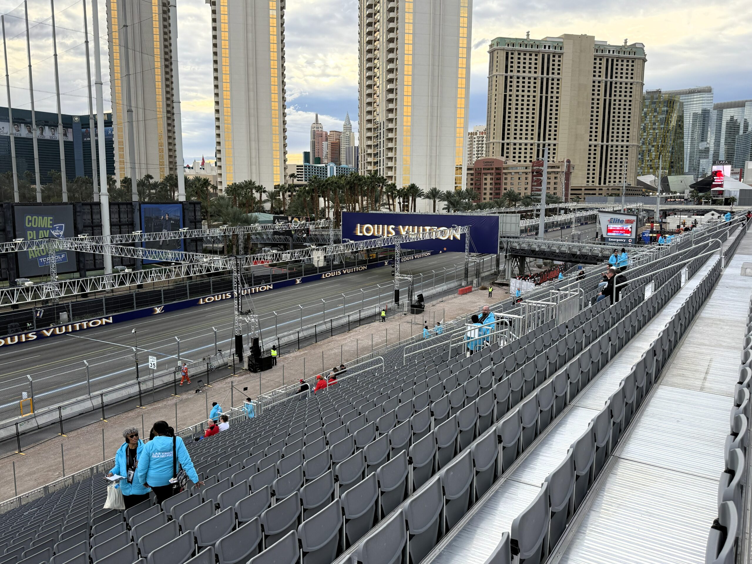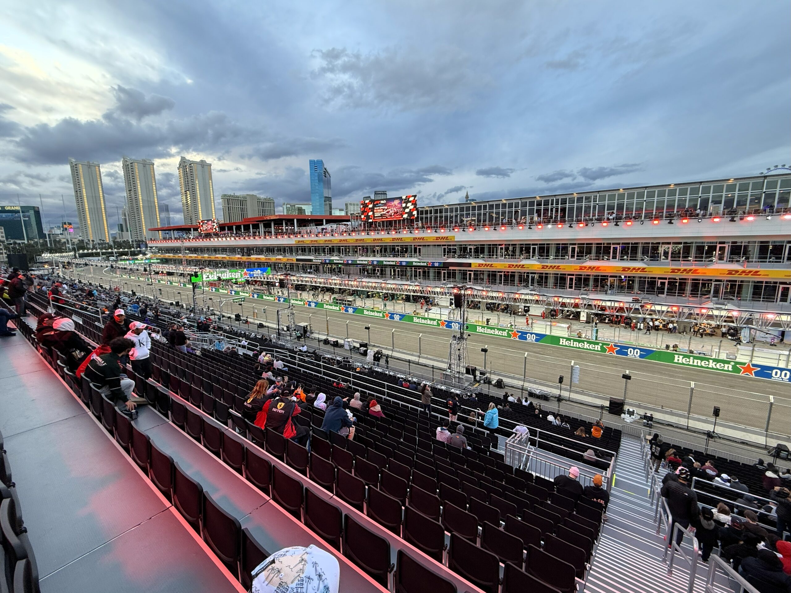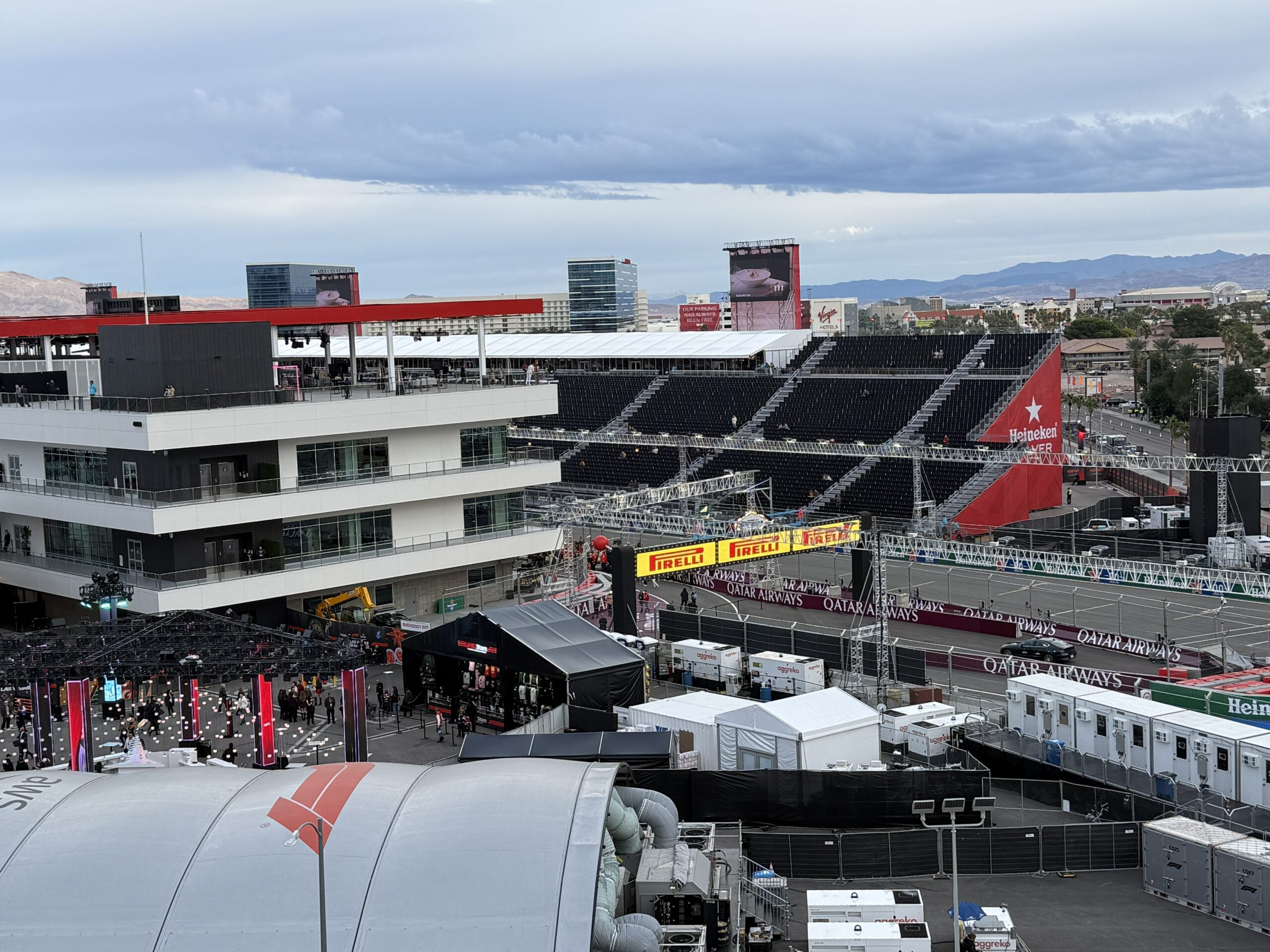 また、スタンドの後方列に上がるほど視界が広がり、ラスベガス・ストリップから、ターン16を立ち上がってくるマシンがストレートを突進してくる様子まで見渡すことができます。