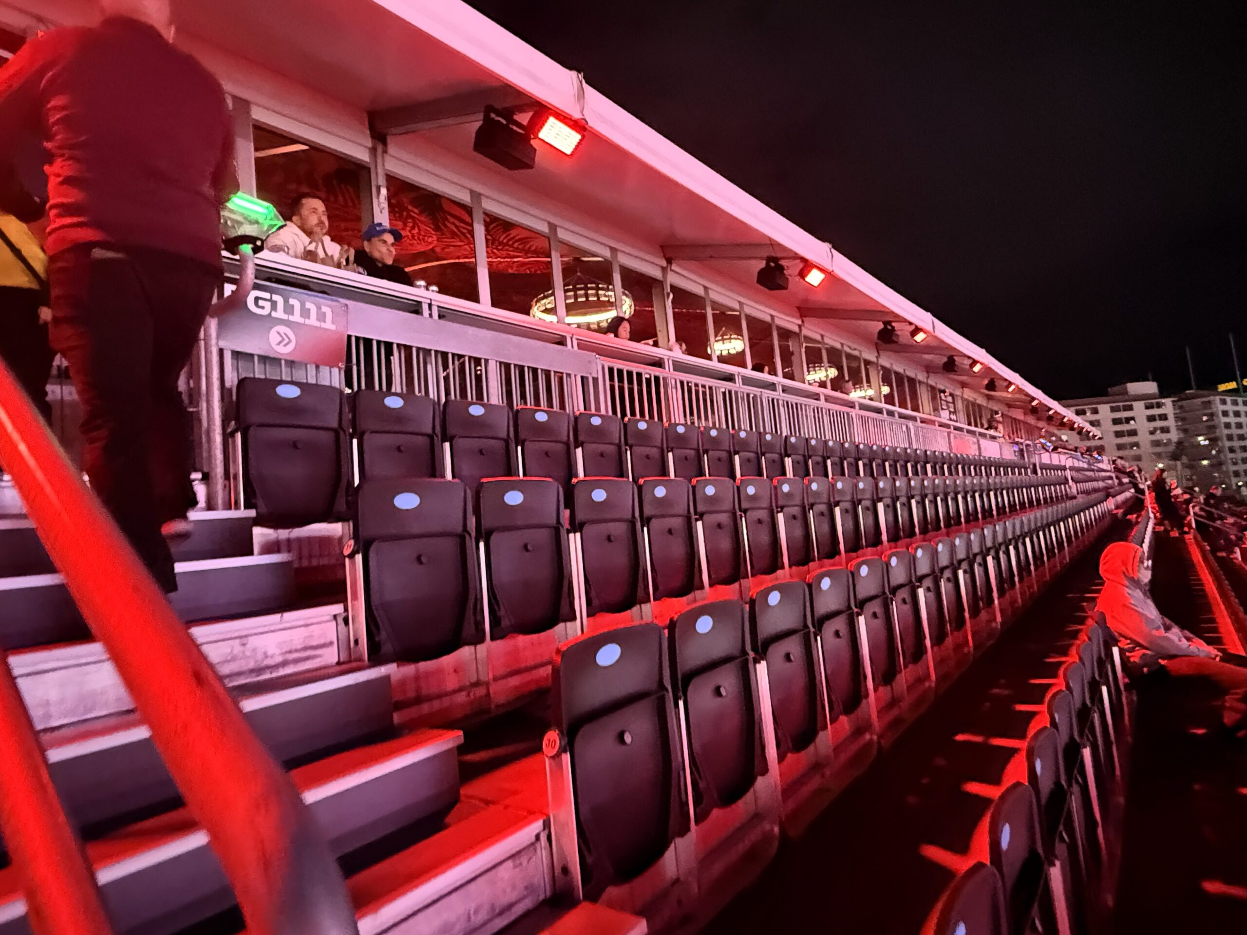 Heineken Silver Main Grandstand の中でも、セクション1107以降の26列目から最上段までは「SKY BOX(スカイボックス)」と呼ばれるプレミアムホスピタリティーの座席です。スタンドの上階に位置し、専用のラウンジエリアを利用できるため、一般席とはひと味違う落ち着いた環境でレースまでの時間を過ごせます。レースが始まれば、各自の指定席からメインストレートを見下ろすように観戦できるのが最大の魅力。スタートの迫力やフィニッシュの瞬間を上階ならではの視界で楽しめる、ワンランク上の観戦体験が期待できます。