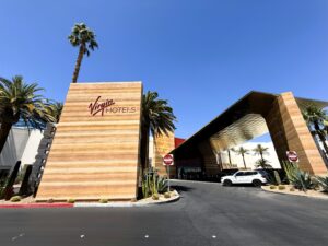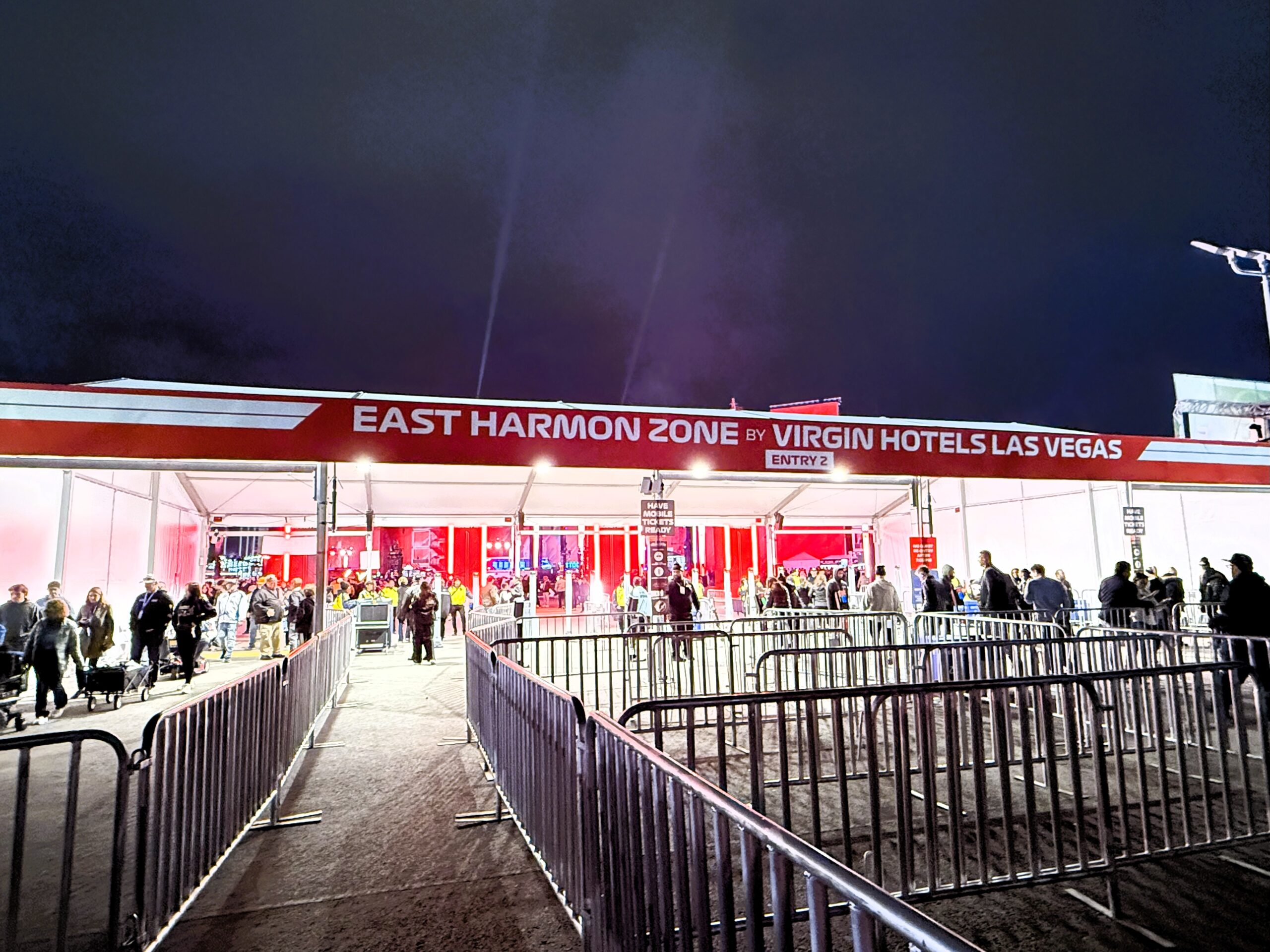 「Entry 2」は Harmon Ave.(ハーモン・アベニュー)沿いにありますが、Harmon Ave.はサーキットコースになっているため、ラスベガス大通りからは歩いて行くことはできません。その為、ホテルからウーバー、もしくはタクシーで「Virgin Hotels:ヴァージン・ホテル」まで行き、そこから徒歩にて「Entry 2」まで行けます。ヴァージンホテルは、F1ラスベガス公式のウーバなどのライドシェア乗り場に指定されています。