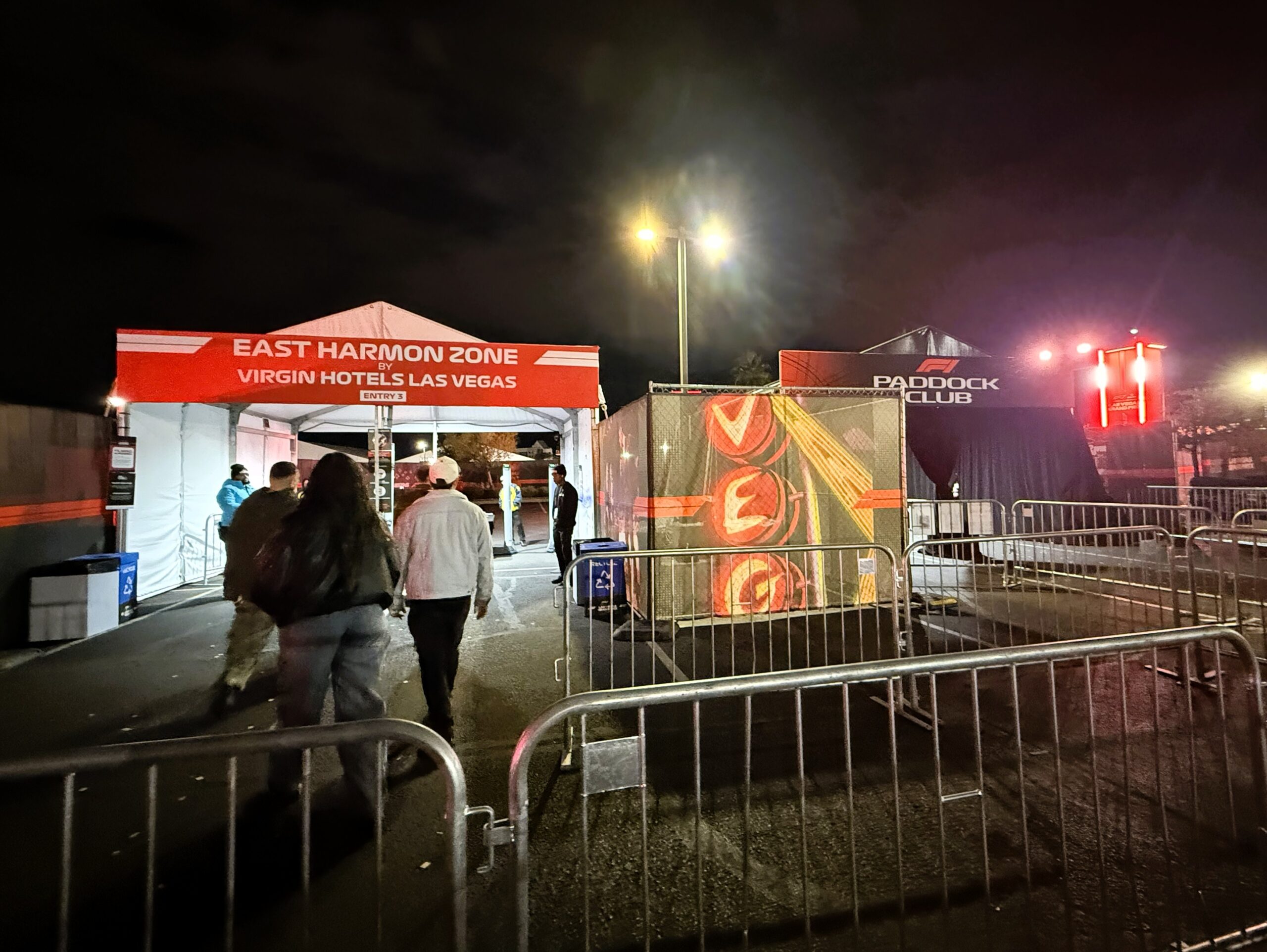 East Harmon Zone のイベントエリアは非常に広く、F1ラスベガスGPの中でも特ににぎわうスポットです。特設ステージでは、F1ドライバーのトークセッションや有名アーティストのライブが次々と行われ、常に華やかな雰囲気に包まれています。