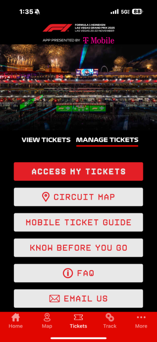 まずはF1ラスベガス・グランプリのアプリをダウンロードしましょう。このアプリではチケットの管理、ゾーンエリアへの行き方、F1全体のスケジュールや、ご自分のゾーンで行われるイベントスケジュールなど、F1ラスベガス・グランプリ全ての情報を得ることができますので非常に便利です。