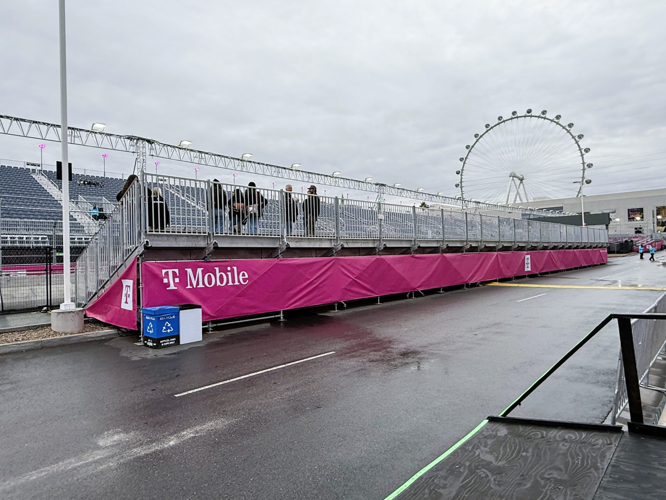 マップ上でピンク色で表示されているエリアが「T-Mobile Zone at Sphere」です。T-Mobile(ティーモバイル)はアメリカの大手携帯キャリアで、F1ラスベガスGPの主要スポンサーでもあり、このゾーンは一般席の中でも特に活気にあふれたエリアとして知られています。