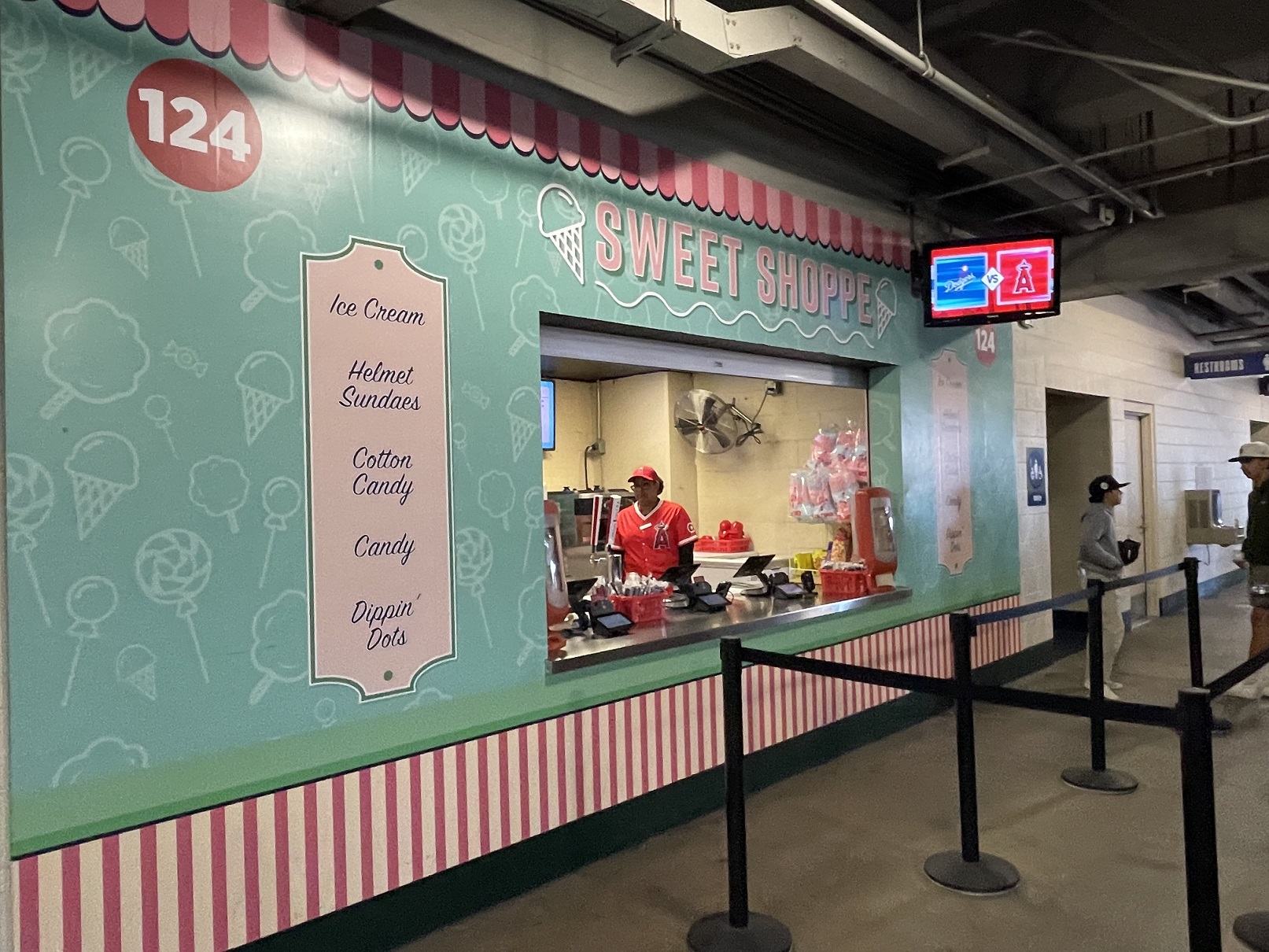 いわゆるホットドック、スナック、ビールなどのボールパークフードを売っている球場内で店舗が多いお店です。