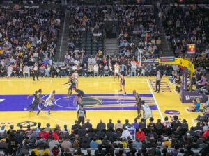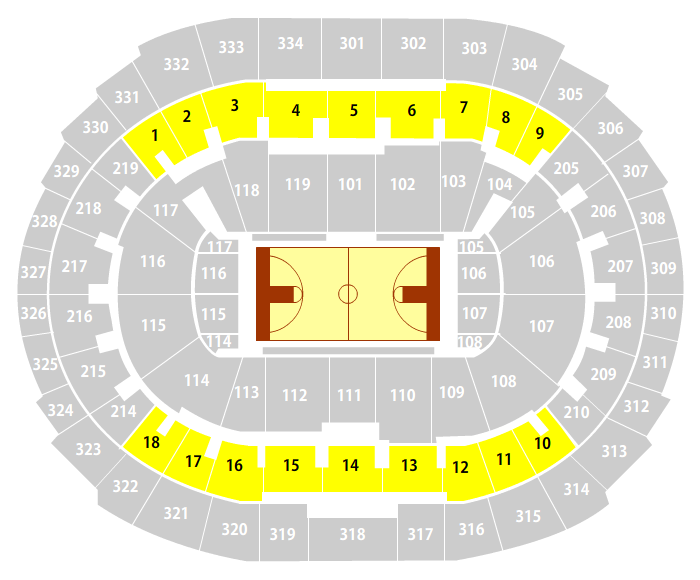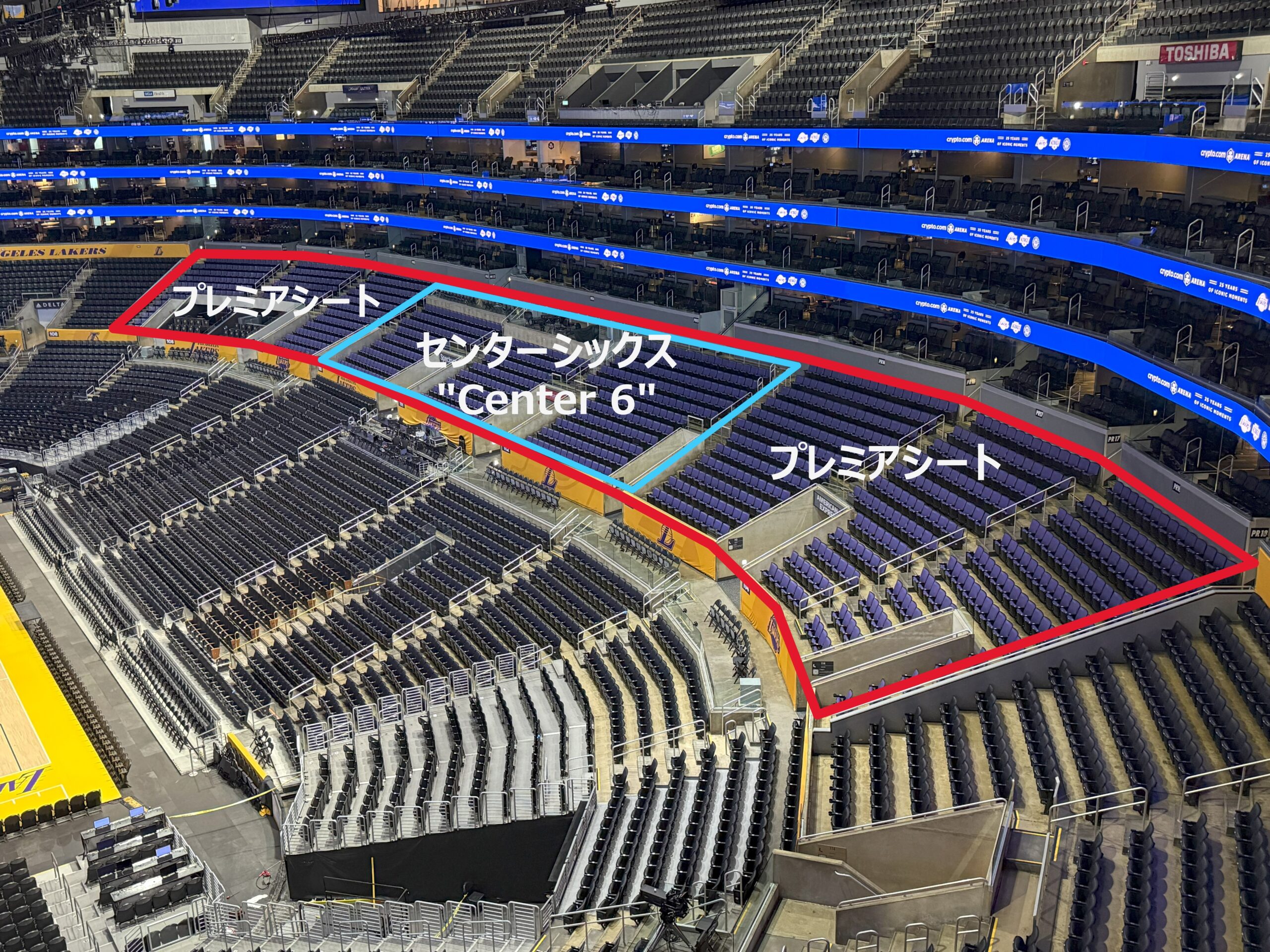 特にNHLのようなプレーの流れが早いジャンルのスポーツは、観やすい座席です。NBAの場合は、迫力を重視する場合は少し物足りないかもしれませんが、近すぎず、遠すぎずの距離感で全体を観るという場合はイメージに合う座席です。