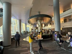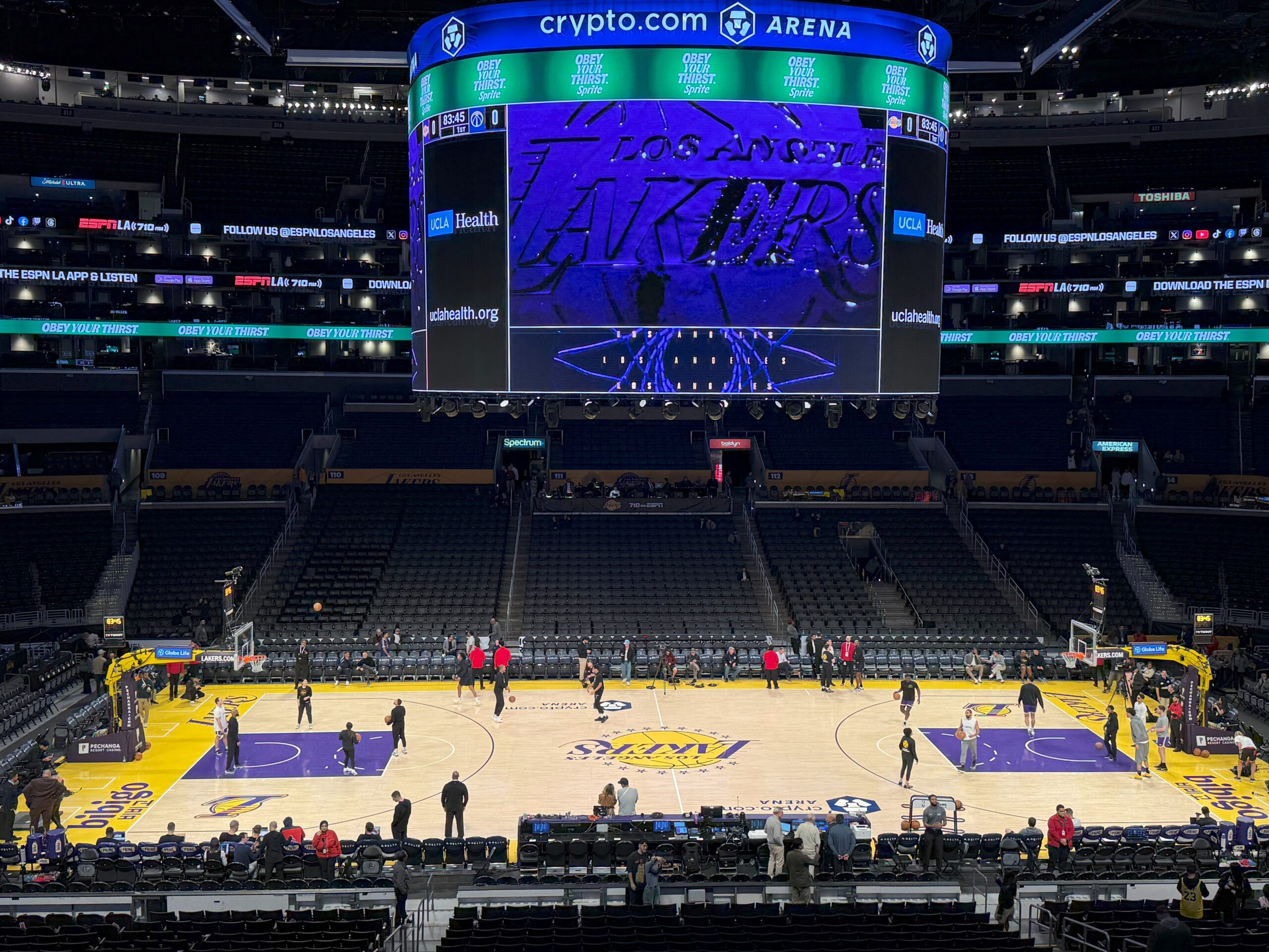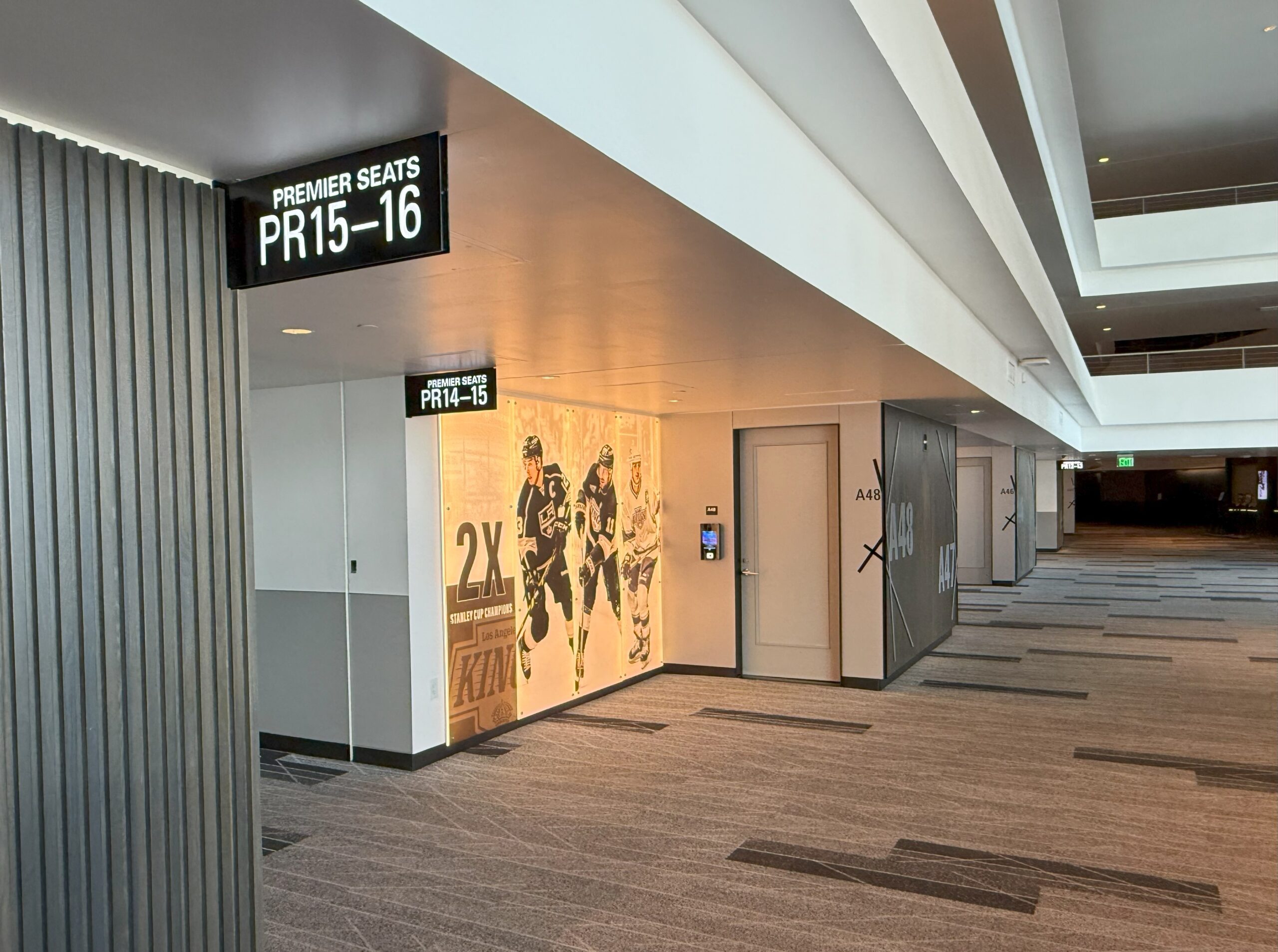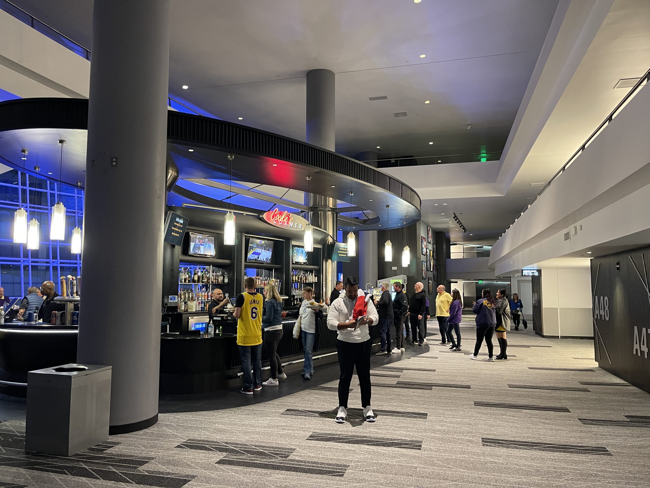 クリプトドットコム・アリーナのプレミアレベルにあるコンコースは、スイート階(Suite A階)と同じフロアにあります。そのため、1階のメインコンコース(100レベル)のような混雑は少なく、通路も広めでとても快適。ちょっと特別感のある落ち着いた雰囲気で過ごせるのが魅力です。