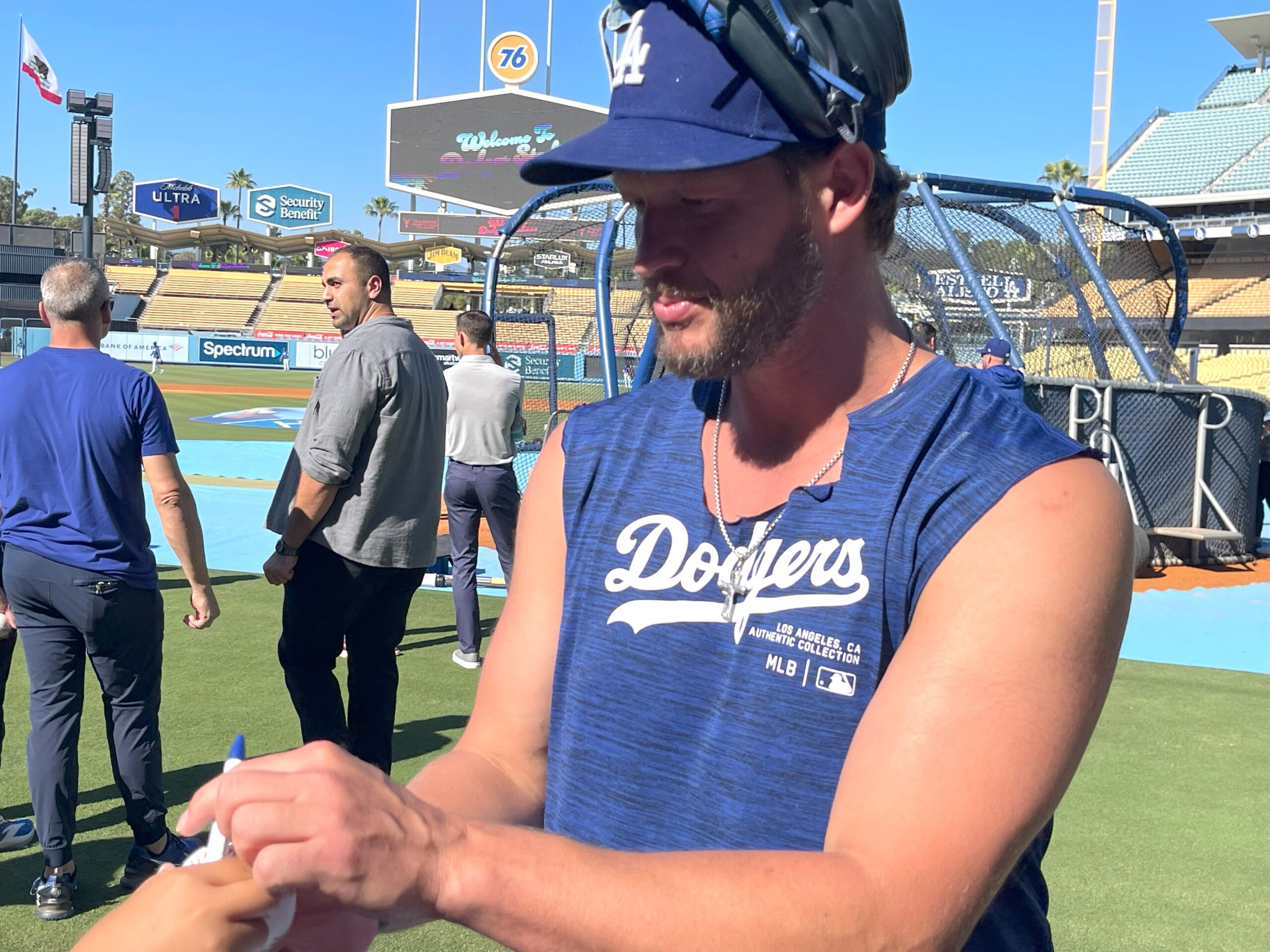 その日のチームの都合によって「バッティング練習」は行われない場合もあります。実際にバッティング練習は行われず、野手陣のシートノックや投手陣のアップとキャッチボールのみという時もありましたので、ドジャースやビジターの練習見学はツアー内容に確約されたものではありません。