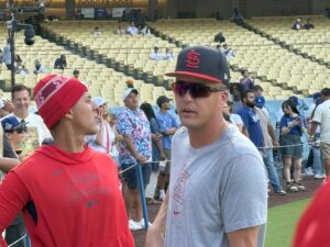 ツアーの前半には、スイート階やドジャースのクラブハウス、ダグアウトクラブがある階のトロフィーギャラリーなどをサクッと見学しますが、ツアーの大半はフィールド上での練習見学になります。
