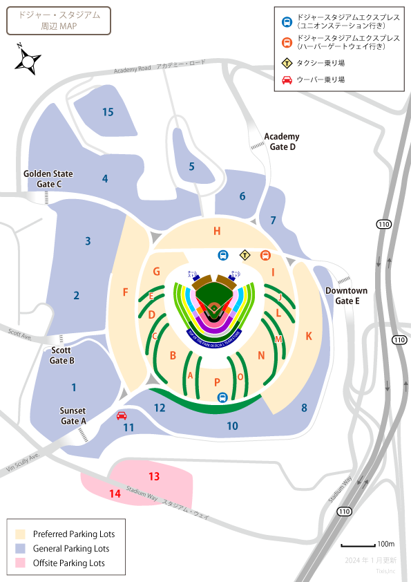 2025シーズンの8月より、VIPツアー、プレゲームツアーの際の駐車場ゲートは「スコットゲートB」から「ダウンタウンゲートE」に変更になっております。ツアー参加者に送られてくる球団からのEメールもチェックするようにしましょう。これは徒歩で行かれる場合も同じになります。